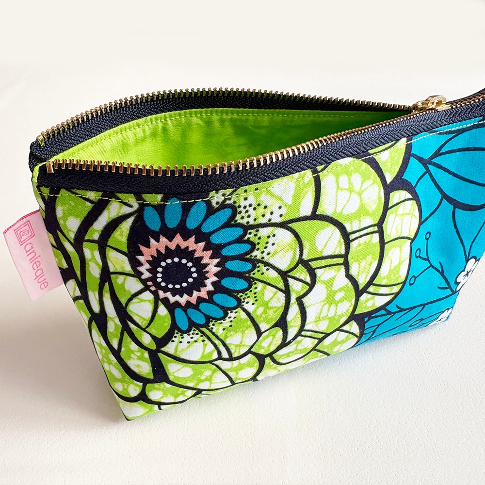 アフリカンプリントを使用した、カラフルで個性豊かなデイリーに使えるマルチポーチが出来ました。コスメもガジェットも、美しく。無機質なガジェットもしまうたび気分が上がります。
