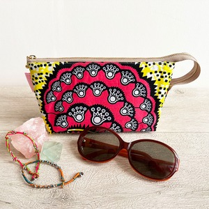 アフリカンプリントを使用した、カラフルで個性豊かなデイリーに使えるマルチポーチです。コスメもガジェットも、美しくひとつに。無機質なガジェットもしまうたび気分が上がります。