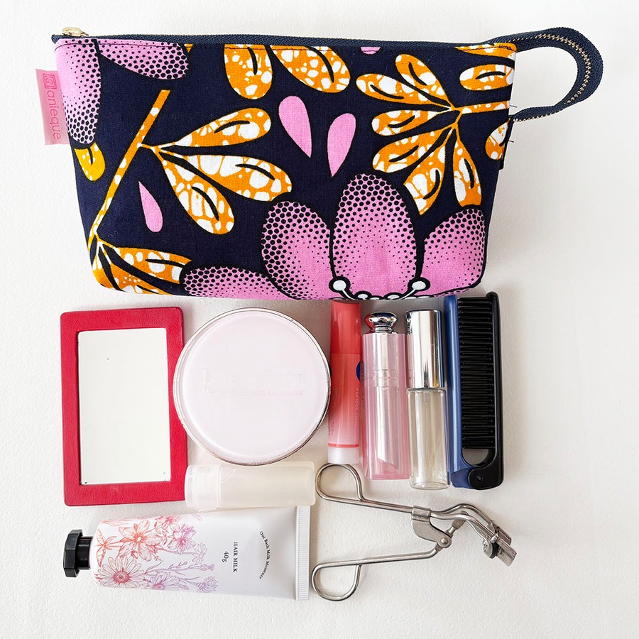 アフリカンプリント デイリーマルチポーチ ナイト・ブロッサム― コスメもガジェットも、美しく収納―