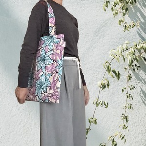 デイリー・ラージトート アフリカンプリント パステル・リリーフラワー ノートPC 通勤 ヨガ マザーズ 収納力