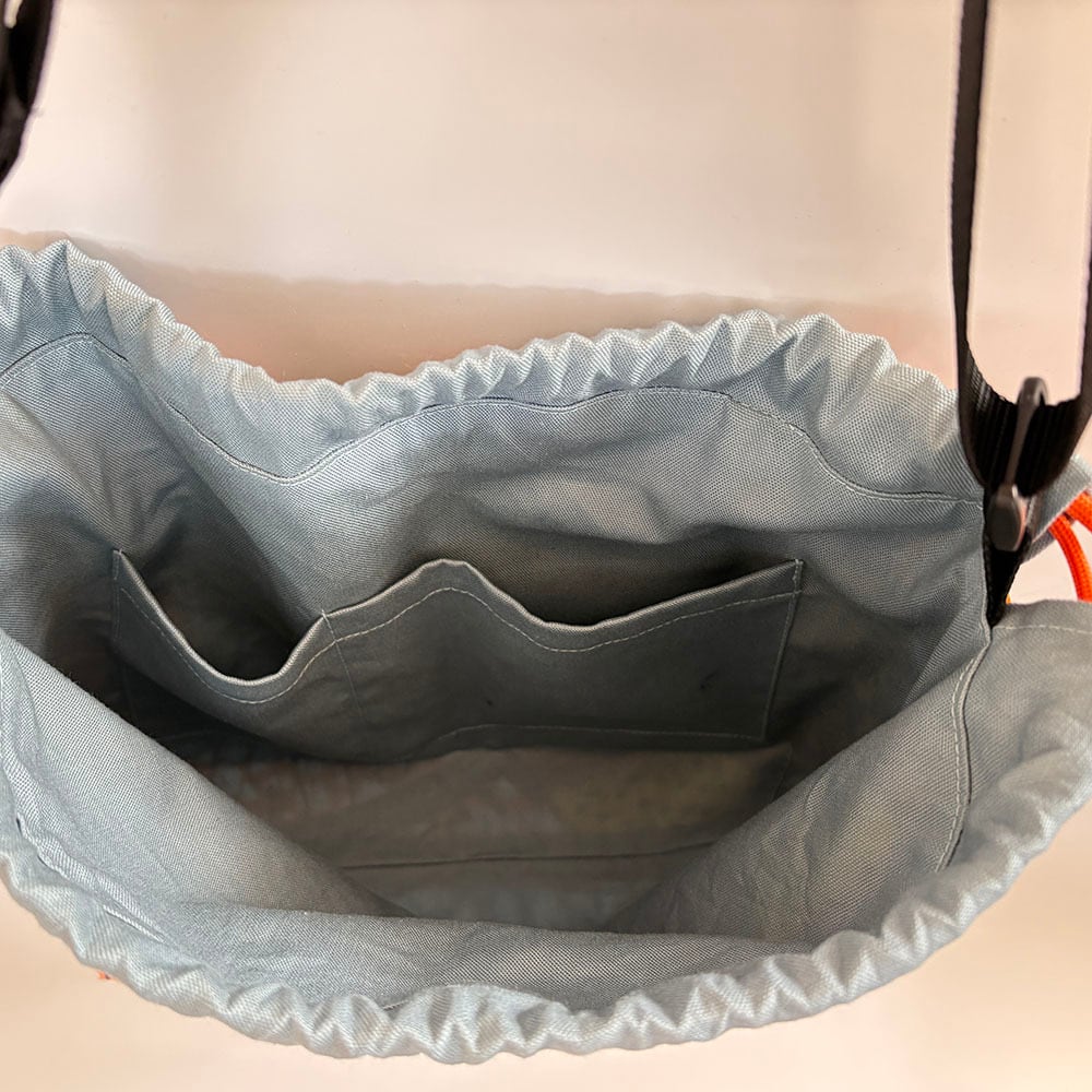 軽くて持ちやすい、巾着タイプのショルダーバッグ。