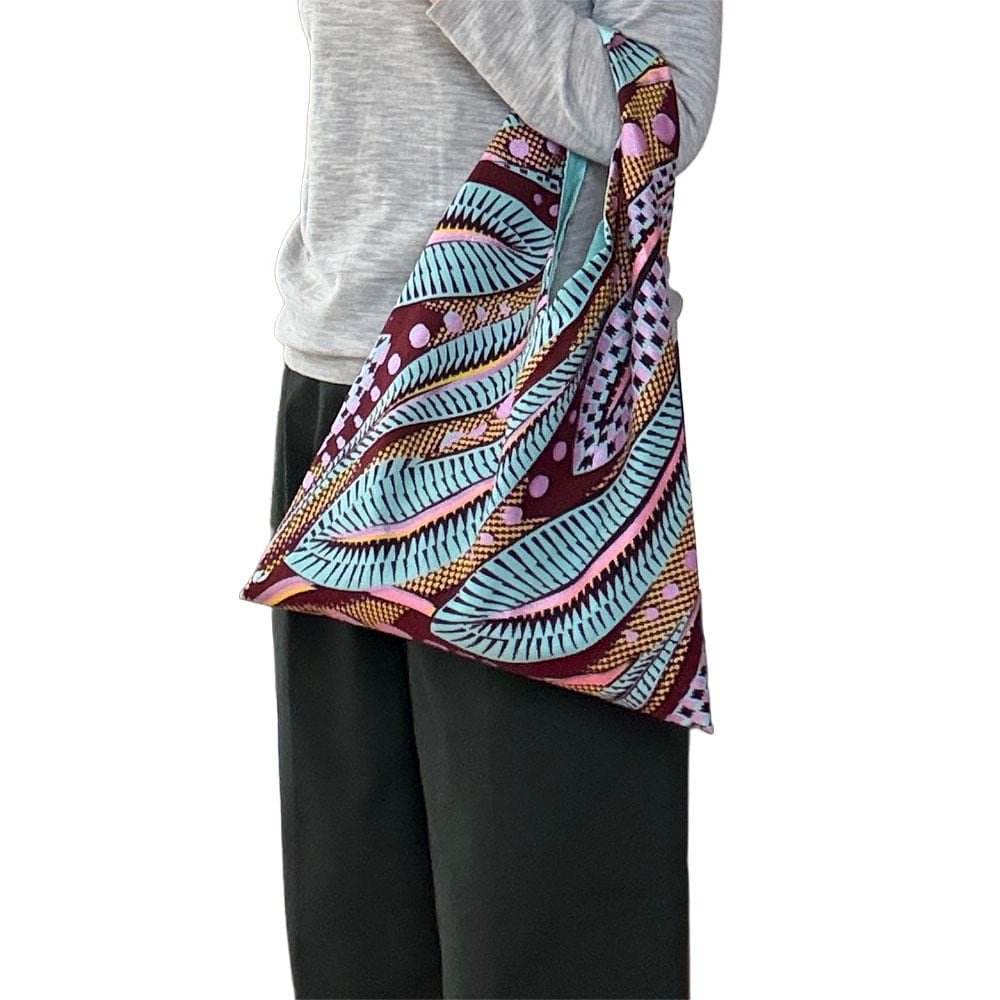 あずまバッグ M|アフリカンプリント エコバッグ おしゃれ カラフル 普段使い ミントリーフ