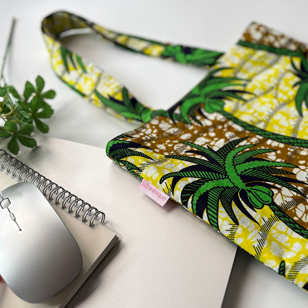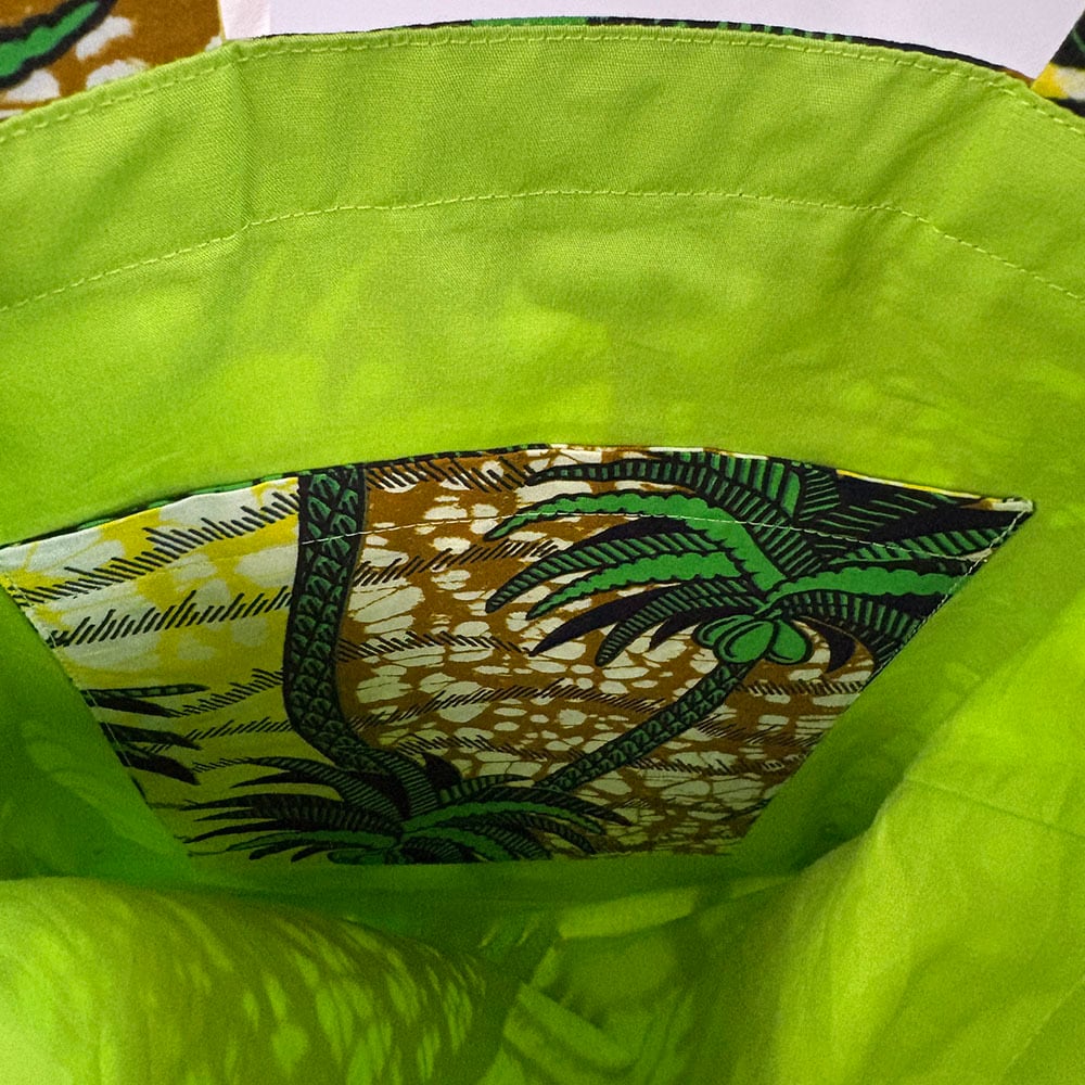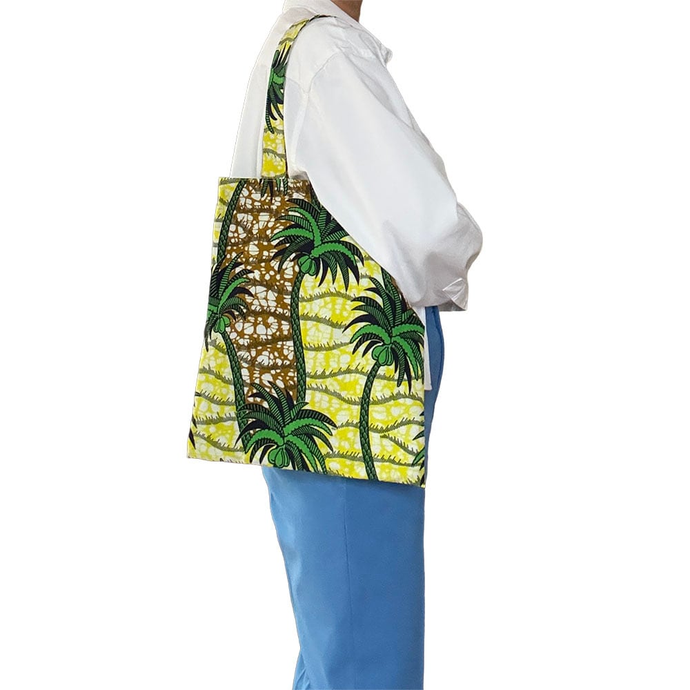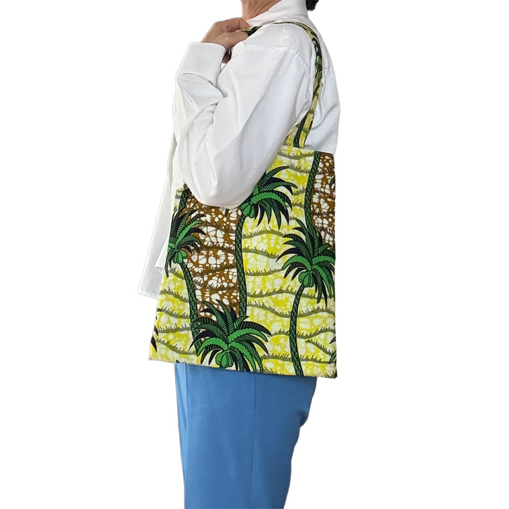 Daily Voyage|トートバッグ アフリカンプリント (内ポケット付)トロピカルパーム エコバッグ サブバッグ 旅行 PCも入る