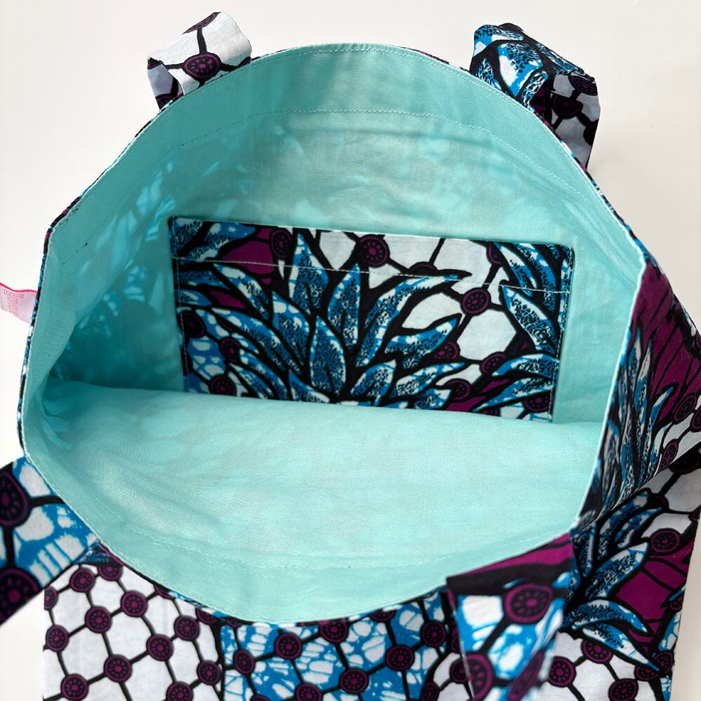 Daily Voyage|トートバッグ アフリカンプリント (内ポケット付)トロピカルパイン エコバッグ サブバッグ 旅行 PCも入る